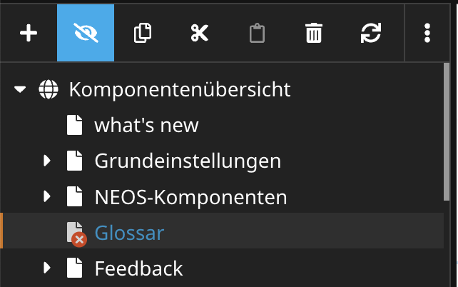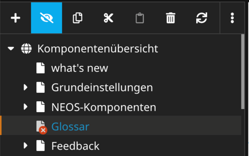 | Verweis | Der Verweis liegt im Seitenbaum und verhält sich wie ein Link. Dieser bietet sich an, wenn Menüpunkte erscheinen sollen, die direkt auf eine andere Seite oder einen Datensatz leiten sollen. |